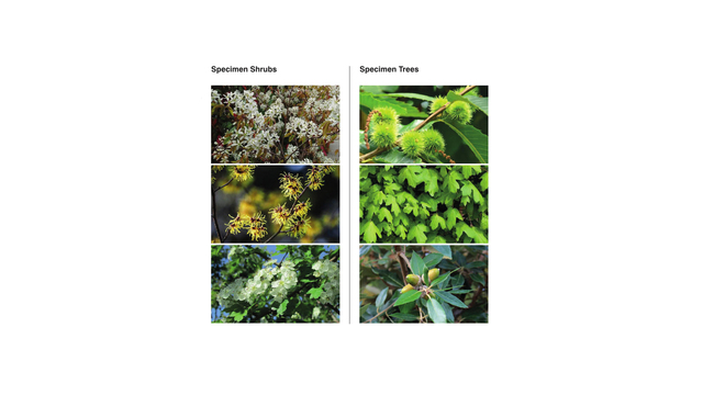 - Mixed species specimen shrubs of small growing multi-stemmed species providing a human scale structure to the layout whilst forming areas of refuge for people and wildlife;